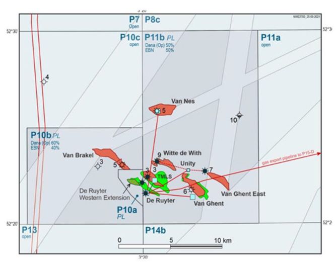 There are two subsea fields, Van Nes and Van Ghent, that form the Medway subsea development. In 2020 the Unity platform was installed and tied back to De Ruyter. The three fields are referred to as the De Ruyter development area.